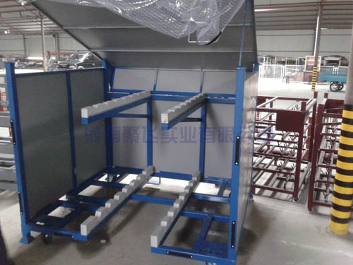 汽车零部件周转料架中间品台车在汽车行业中得到了广泛的运用。因每款车型配置不一样,整车中所包含的零件的形状、尺寸大小、材料属性等都有所不同。加上车型寿命厂,其供货周期也长,为降低零件的物流成本,某些特殊零件需要使用到非标周转料架